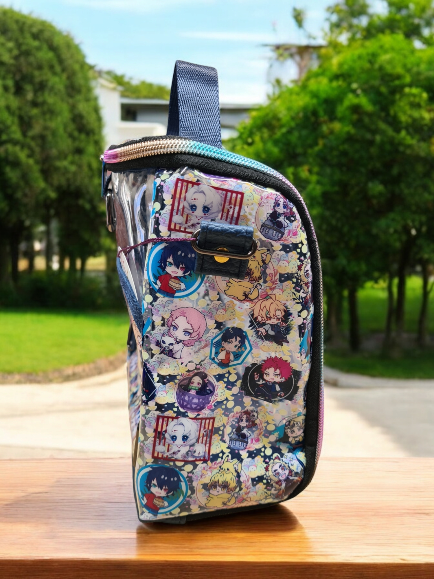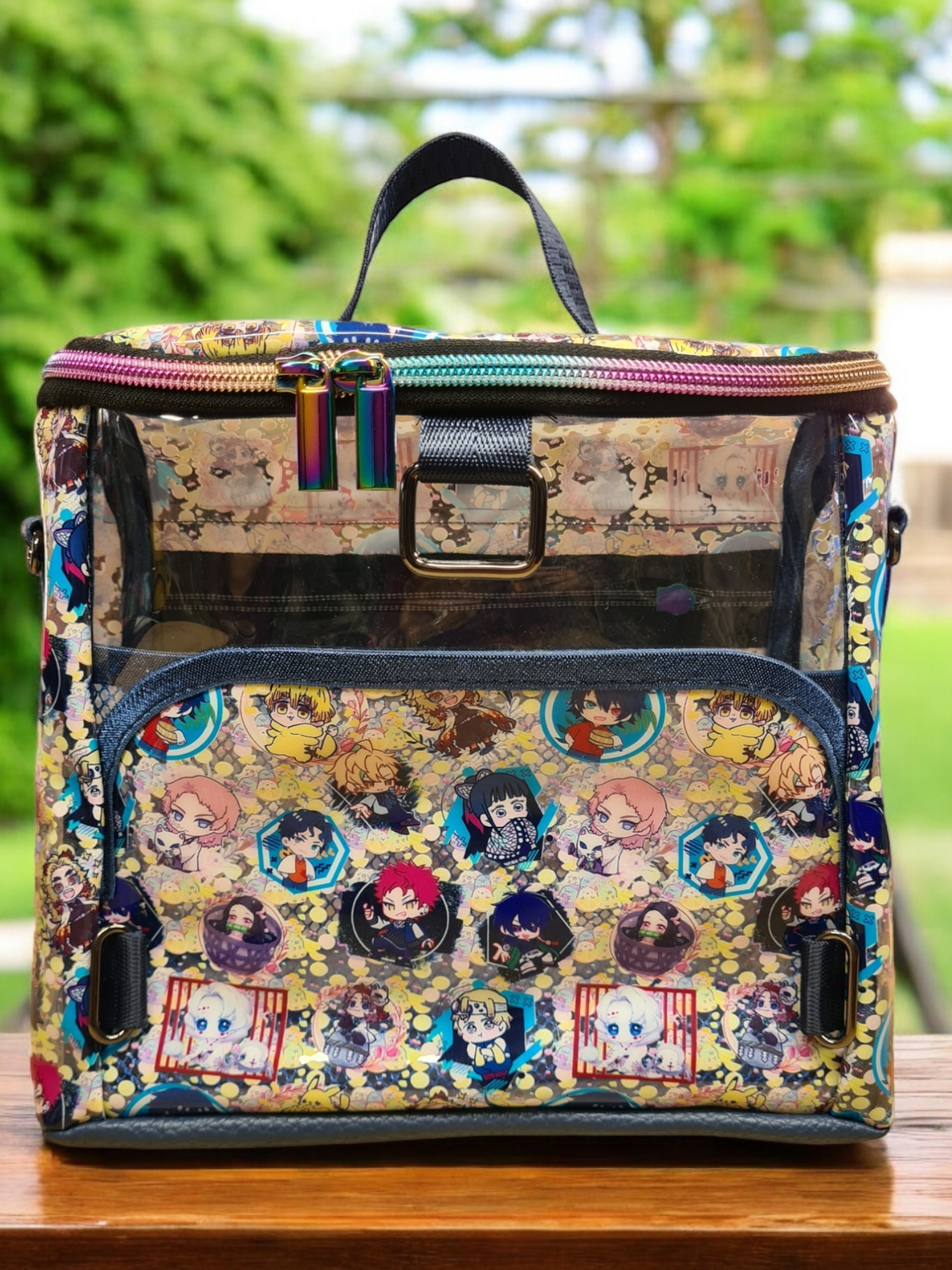 This convertible clear bag is super cute yet super functional. This bag can be used as a backpack, a crossbody bag, or a handheld bag thanks to the removeable & adjustable strap. Features include: • Full zipper for easy access to interiod • Fold flat for easy storage & great for trabelling • Front zipper pocket, internal mesh pocket and a slip pocket on the back exterior. • Flap handle for easy handling, especially for little hands • Perfect travel bag – anti-theft function with main pocket zipper pulls right at your back when used as a backpack • All internal fabric is waterproof fabric and easy to wipe clean • Size approximately – 21cm Wide x 20cm Tall & 11cm Deep Video of bag style: https://fb.watch/tV8Dm409WX/
