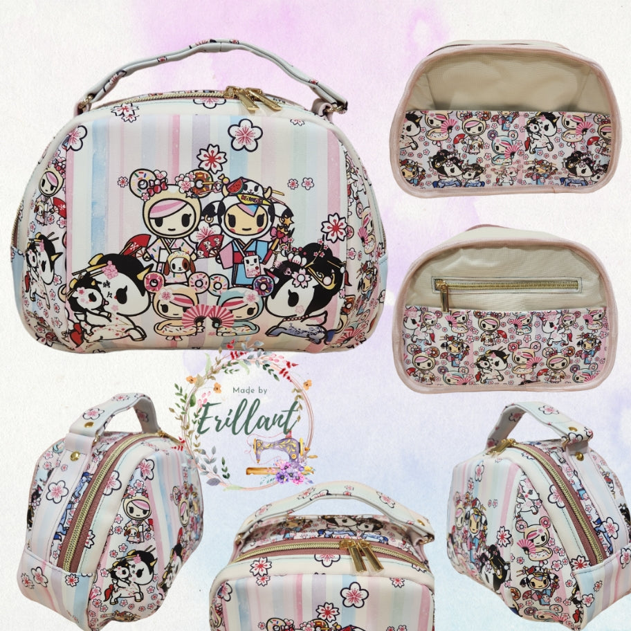Materials used: Full Faux leather exterior, with waterproof canvas interior and faux leather slip pockets.