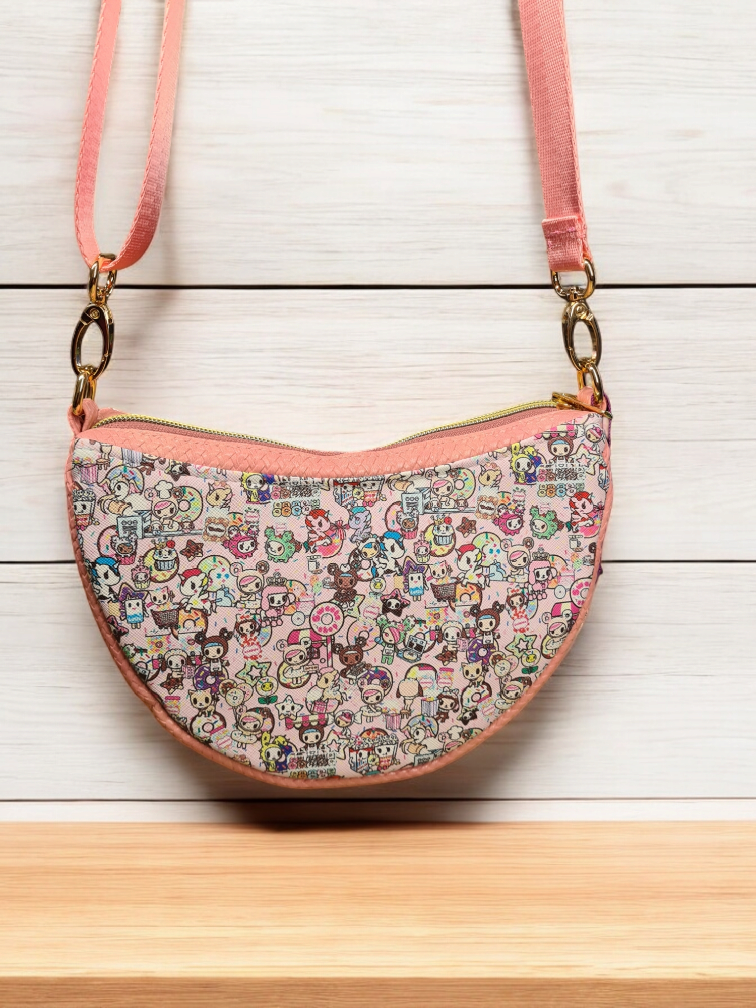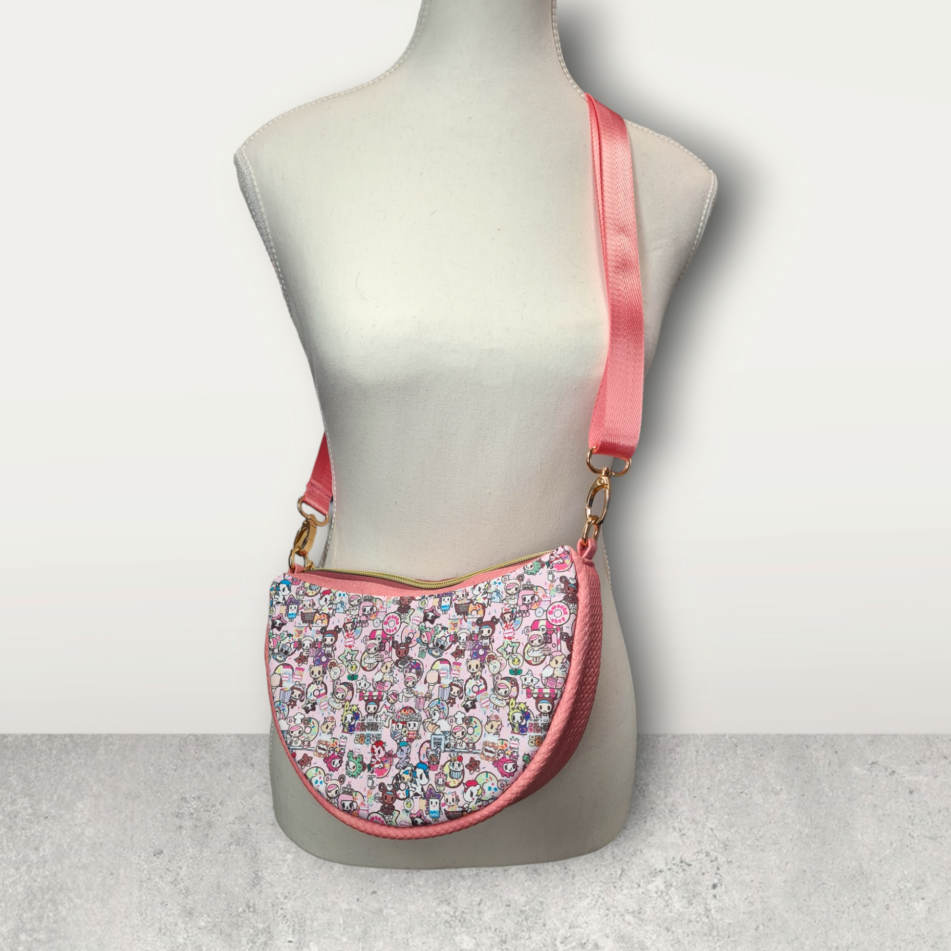 This cute as a button Crescent shaped bag can be worn as a sling close to your body or a crossbody bag thanks to the adjustable strap that comes with it. The Luna bag is designed with functionality in mind. It features a fully enclosed zipper, ensuring that the bag remains securely closed even when worn as a crossbody sling. This is particularly important for those who are constantly on the go and need their belongings to be safe and secure. Inside there are 2 slip pockets as well to keep your valuables safe & secure. Measuring approximately 20cm wide x 13.5cm high x 7.5cm deep. Made with Faux leather exterior & waterproof lining interiors.