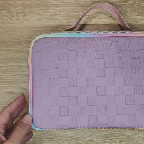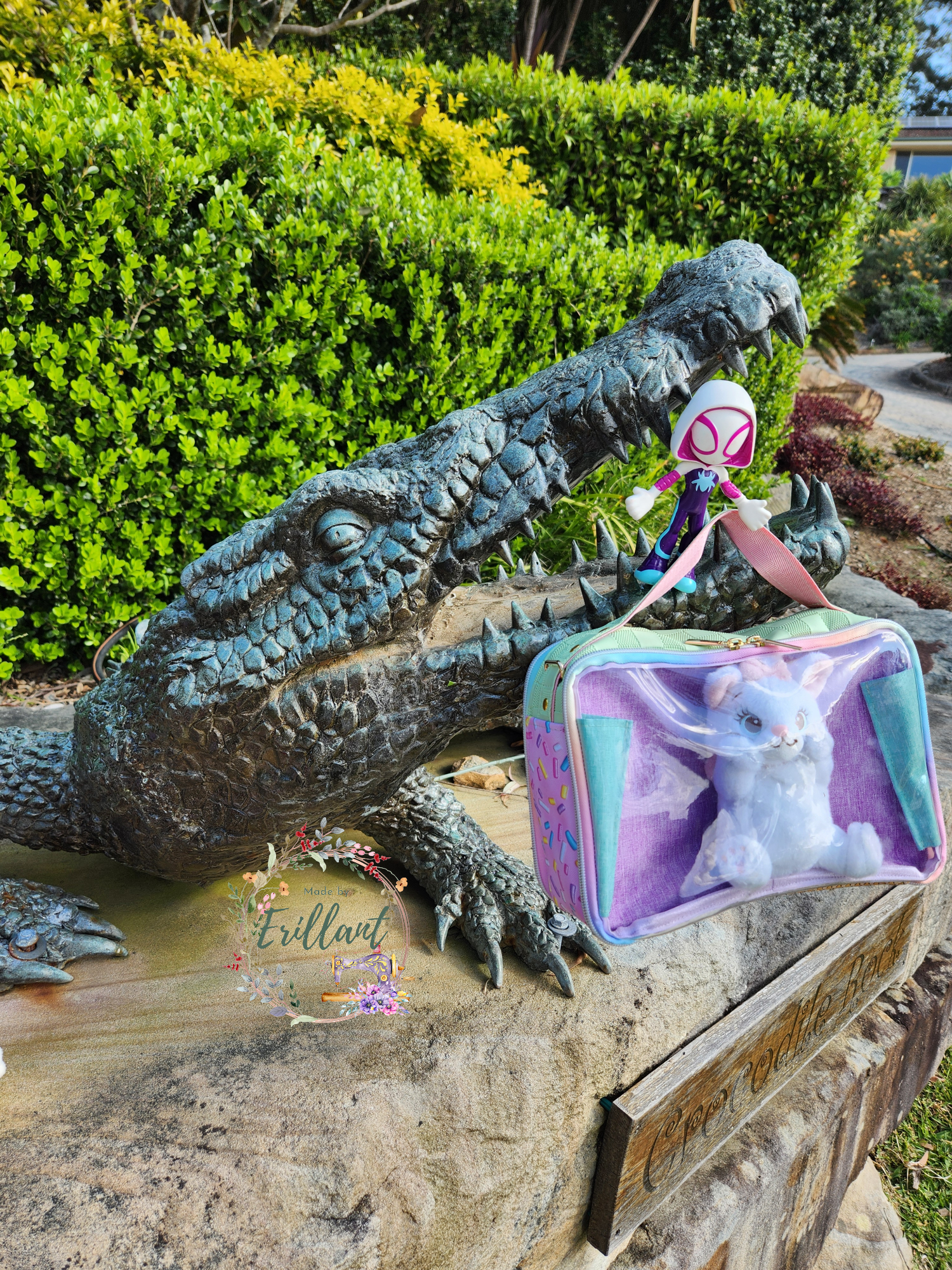 One side is a gorgeous, sophisticated checkered faux leather look, the other side is a clear opening for you to display your figurines, toys, or pins (Pin board included); The other compartment featured 3D pockets, a Zipper Divider pocket, zipper pocket, slip pocket & 6 Card slots. Seriously, this is the Ita bag that comes with functionality & display-ability in mind.