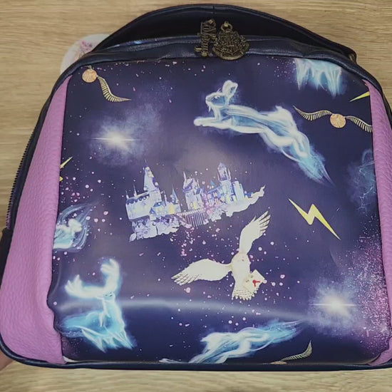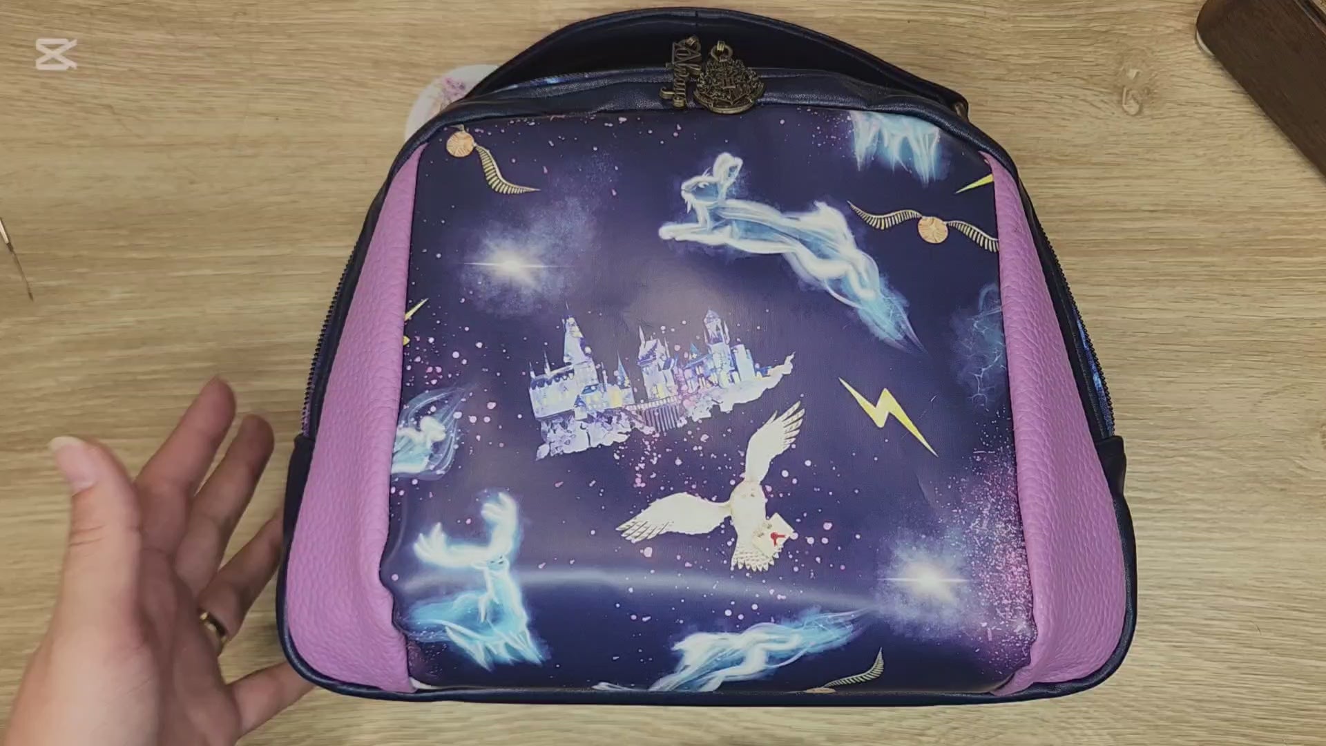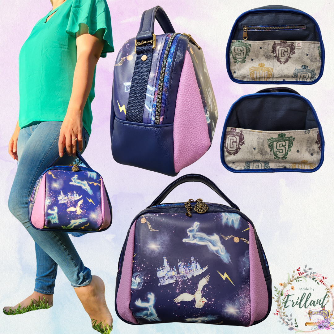Pocket details: large exterior zipper pocket on back, main compartment access by themed double zipper pulls, large internal zipper pocket and 2 internal slip pockets (1 which is divided into 2 sections)