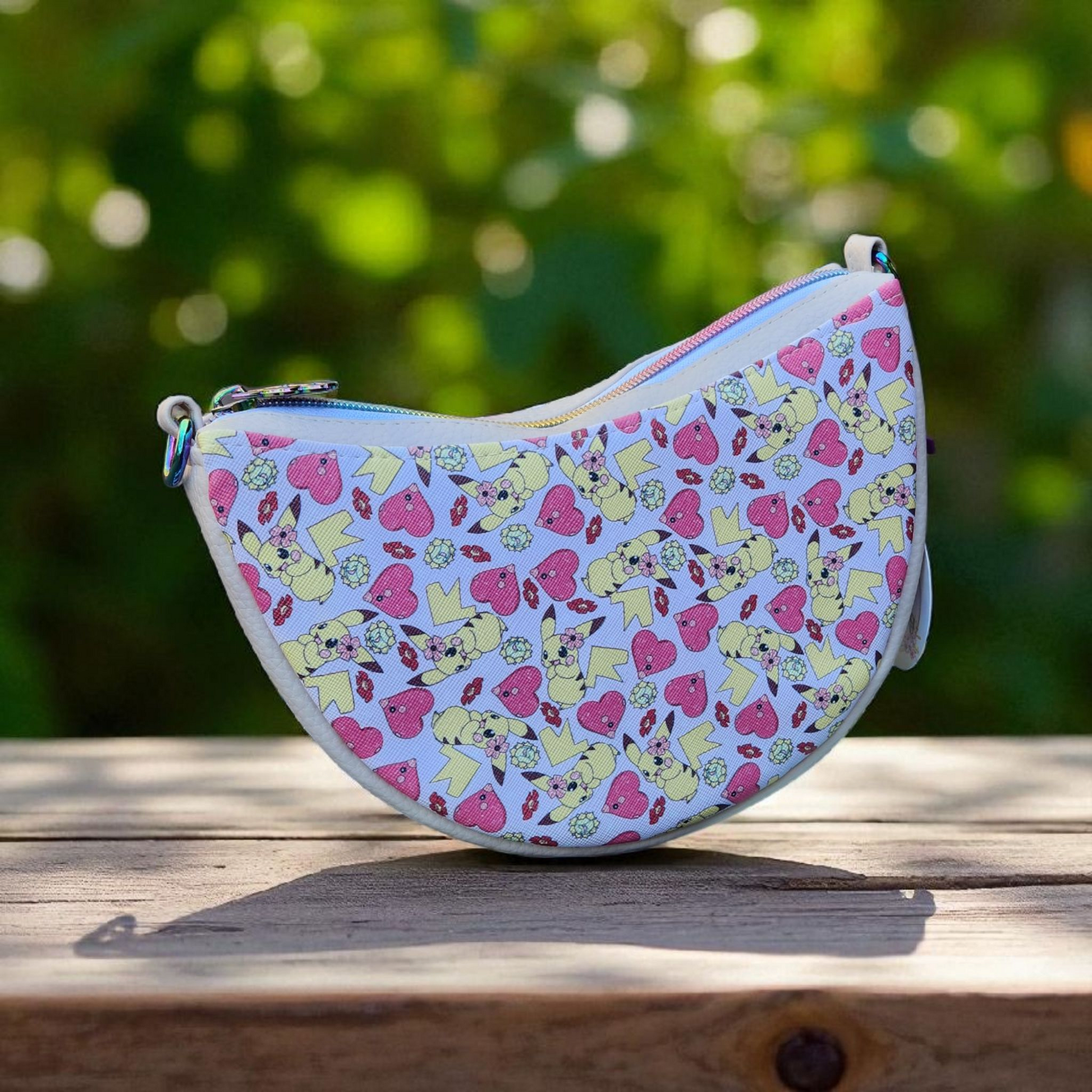 This cute as a button Crescent shaped bag can be worn as a sling close to your body or a crossbody bag thanks to the adjustable strap that comes with it. The Luna bag is designed with functionality in mind. It features a fully enclosed zipper, ensuring that the bag remains securely closed even when worn as a crossbody sling. This is particularly important for those who are constantly on the go and need their belongings to be safe and secure. Inside there are 2 slip pockets as well to keep your valuables safe & secure. Measuring approximately 20cm wide x 13.5cm high x 7.5cm deep. Made with Faux leather exterior & waterproof lining interiors.