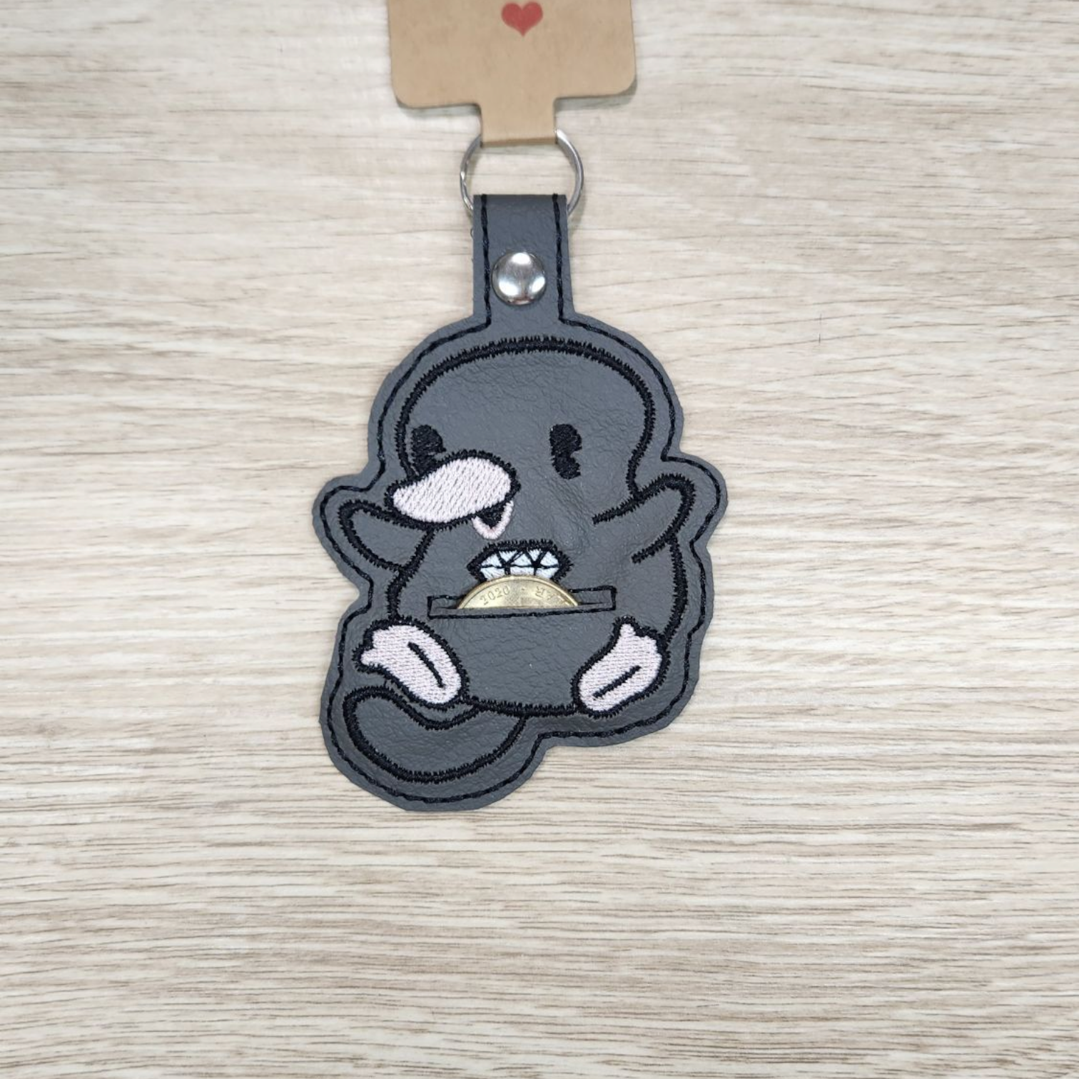 This cute as a botton Keyring comes with a little pouch, which fits $1 or $2 coins or conveniently, an Aldi trolley coin. You'll never have to search for a coin again!