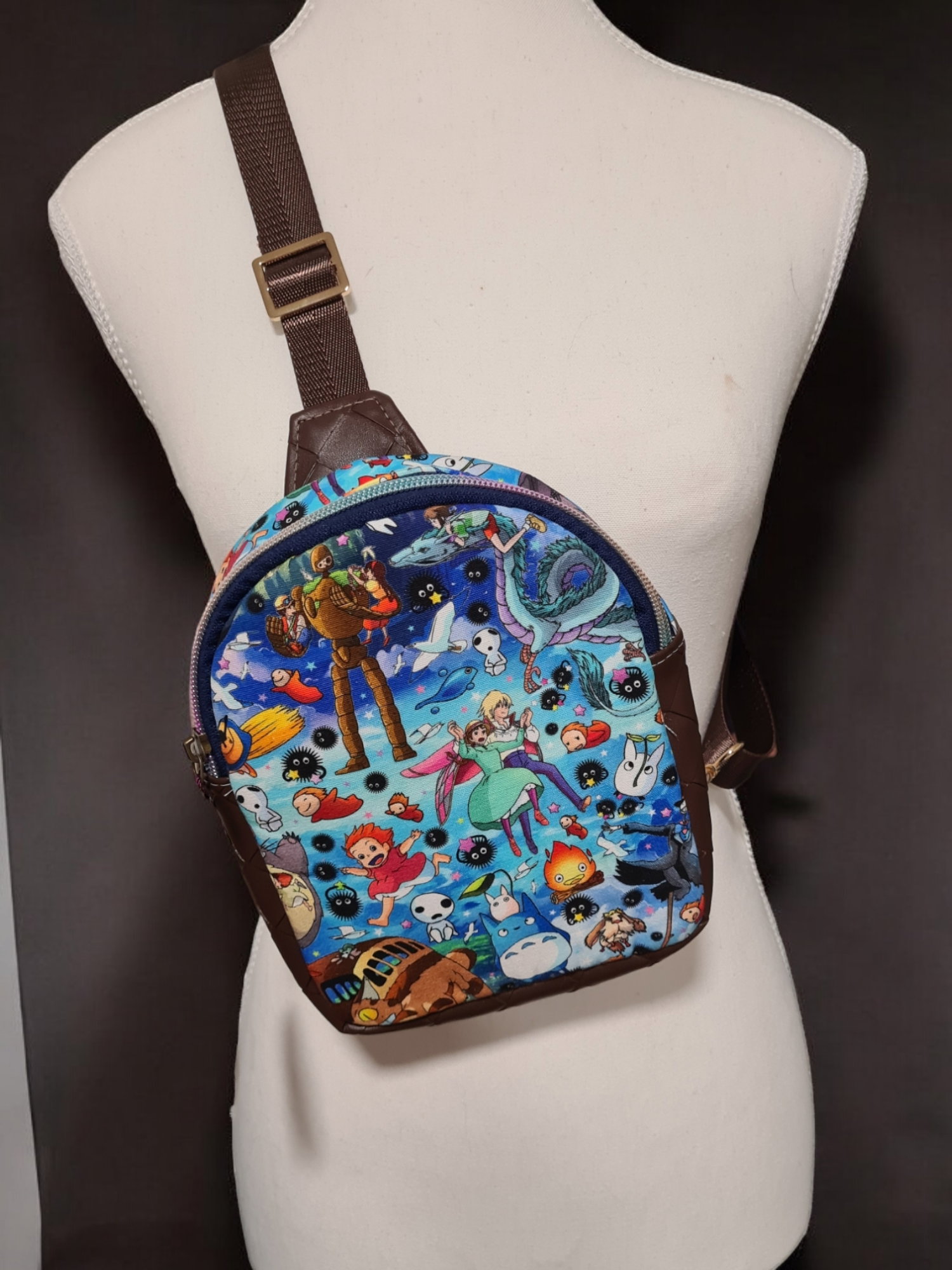 These stylish petite slings can be worn across the front or the back thanks to a strategically placed D ring allowing the strap to easily move from side to side. This sling suits a young child (my 18 month old wears one) through to an adult thanks to the adjustable strap. The feature portions are made with fabric and stabilised, to ensure structure, and the sides, back and bottom are all made with faux leather. The inside is lined with waterproof canvas & features a zipper pocket.